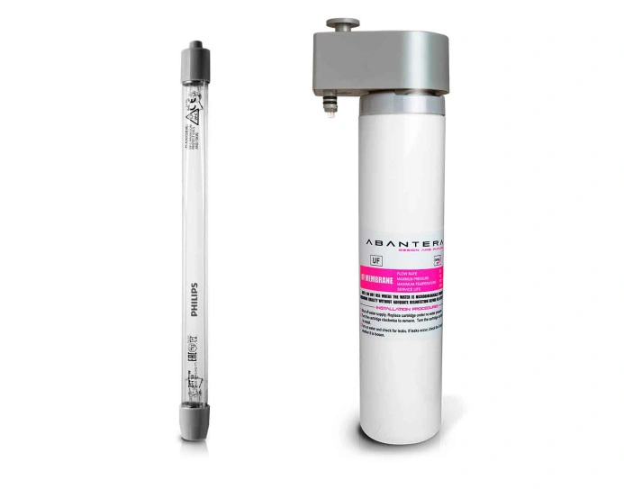 El sistema integrado de tecnología ultravioleta de 11W de potencia que incorpora, garantiza la eliminación del 99,99% de gérmenes, virus, bacterias y quistes que hubiesen sobrevivido al proceso de ultrafiltración anterior. Al combinarse este sistema de ultrafiltración de última generación con el novedoso sistema de tecnología ultravioleta, se garantiza la dispensación de agua de una pureza excelente