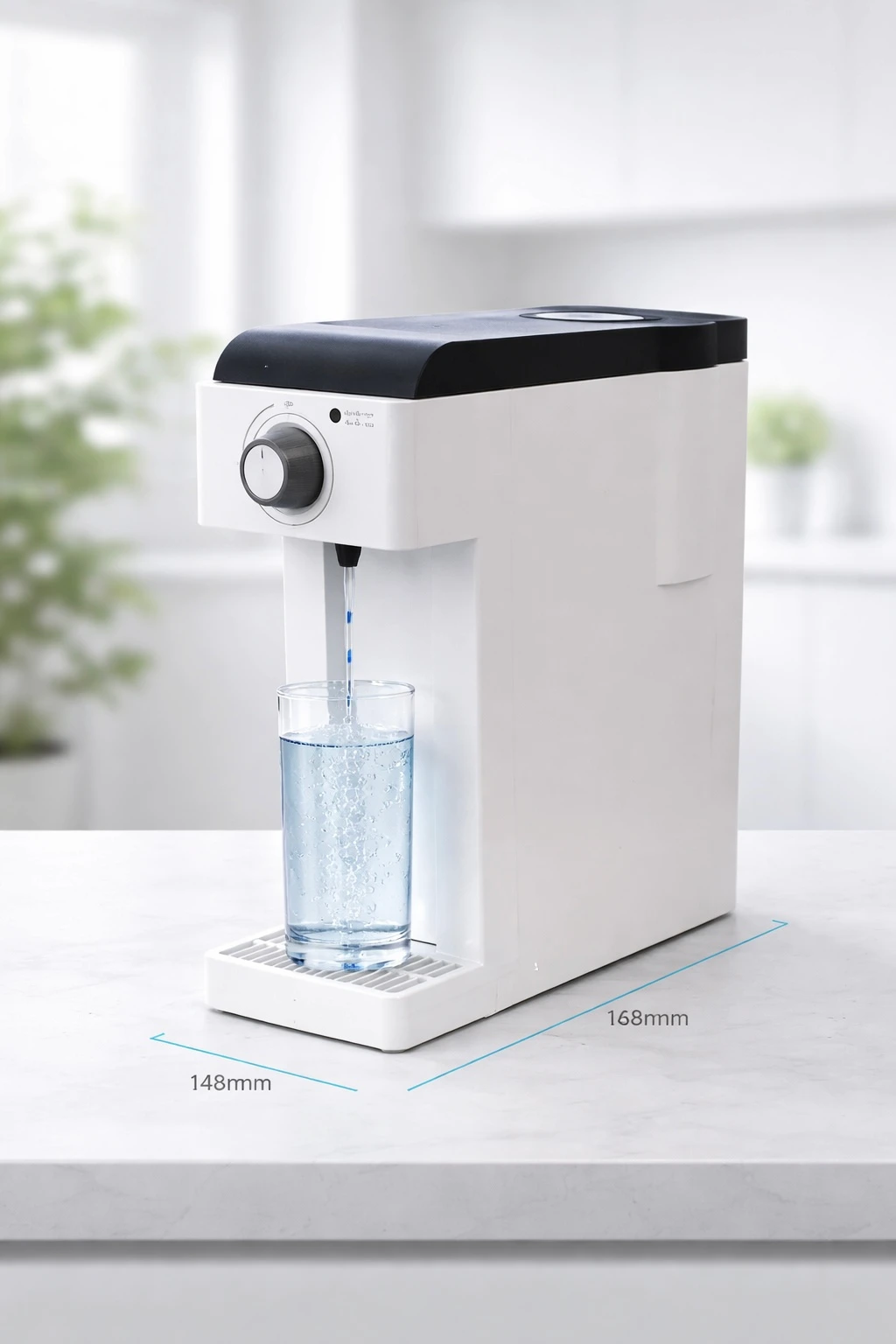 Con un diseño moderno y minimalista, este dispositivo encaja perfectamente en cualquier espacio. Sus dimensiones compactas (aprox. 148 mm de ancho y 360 mm de profundidad) lo convierten en una solución ideal para el hogar u oficina.